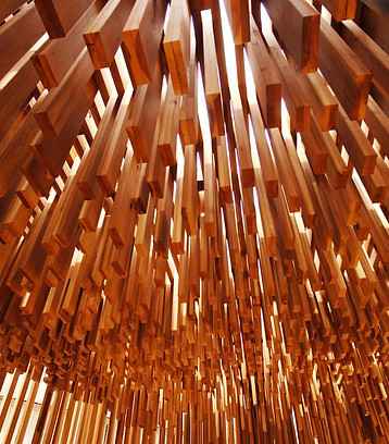I was initially inspired to create a very simple cardboard structure for the first design. More specifically, I took a piece of cardboard and divided it in three. Then I inserted layers forming a maze like structure inspired by Adjaye's wooden work (seen above).